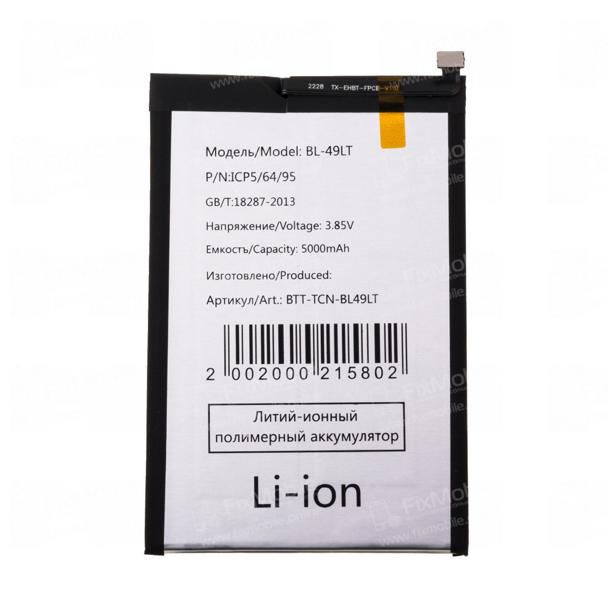• Тип товара:Аккумулятор